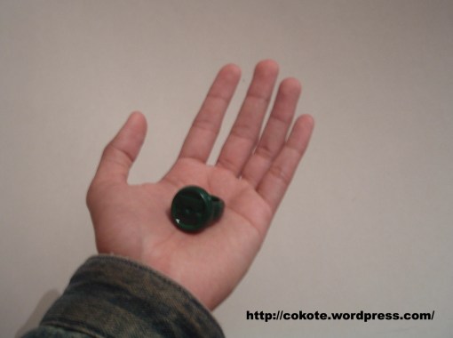 En la última foto se ve la relación de tamaño del anillo con mi mano, tiene peso adecuado ya que no es tan ligero como si fuera de plástico, lo cual me agrada mucho 🙂 y si es que hubo alguién que se preguntó si salgo a la calle con el anillo puesto… eeehhh, siento la decepción  pero no, todo tiene su límite.