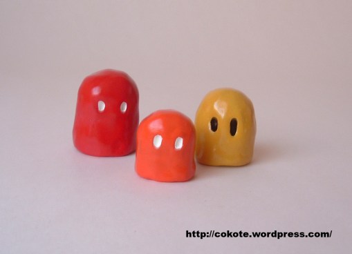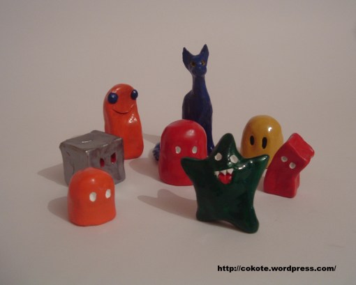 Estas son unas figuritas de arcilla, pintadas con acrílicos brillantes.