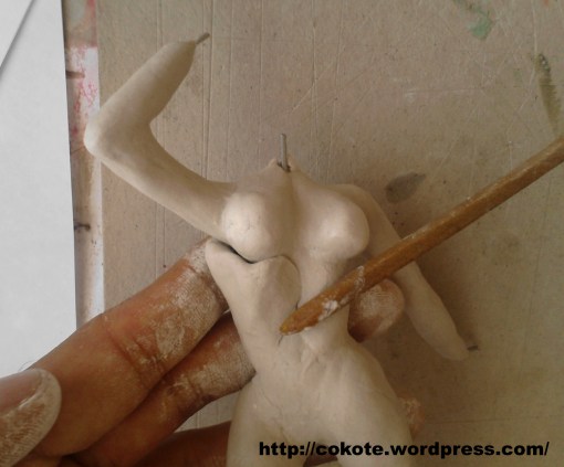 Esta foto es vieja pero probaba una figura de arcilla sin esqueleto para solucionar el problema de las grietas.