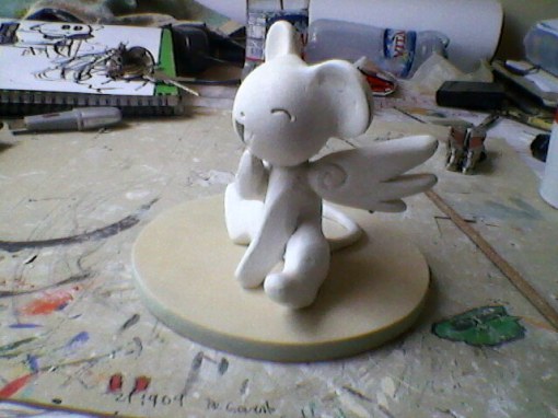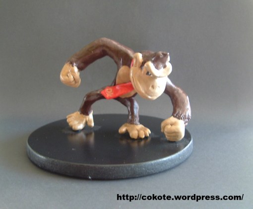 Bien, antes de pasar a las fotos, creo que es importante mencionar una inquietud que una querida amiga me hizo saber y es sobre los materiales, en particular sobre la pasta das, me decía que es intratable, que no conseguía modelar nada a diferencia de la cerámica en frío, que le acomodaba más, admito que es verdad, la primera vez que usé pasta das no pude modelar nada y me dije que «esos monos» del envase eran photoshopeados (sobretodo el erizo XD) pero si se puede, lo sé por experiencia propia, cuesta acostumbrarse eso sí, solo no hay que desistir ni desanimar, la pasta das la recomiendo para empezar a probar y para aprender algunas cosas, pues existen otras masas de carácter profesional y comercial si lo que uno busca es un mejor acabado (Masilla epoxy, super sculpey, fimo, etc.) pero a veces no es fácil conseguirlas, al menos aquí donde vivo, hablamos sobre eso, lo difícil que puede ser conseguir, aveces, los materiales para trabajar, que muchas veces debemos encargar desde otro lugar y que en mi caso particular, al comenzar con mis primeras figuras no contaba con contactos ni suficientes recursos económicos como para realizar dicho encargo, pero esa «carencia» de ciertos materiales se convirtieron luego en fortalezas, pues creo que desarrollaron rasgos importantes en mi habilidad, como por ejemplo paciencia a la hora de trabajar o planear una figura :). Luego de un pequeño tip mi amiga le dio otra oportunidad a la pasta das y admito que me sorprendió gratamente 🙂 realizó una figura genial XD (Felicitaciones de nuevo 🙂 ) no soy un experto, pero si puedo decir que no hay que desistir ni desanimar, hay que probar y probar materiales y encontrar un método que nos acomode para trabajar aunque a veces no puedas contar con los materiales idóneos, de todas formas puedes realizar buenos trabajos.