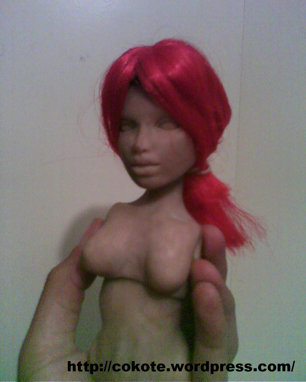 Poco a poco tomaba forma, el pelo sí es todo un tema, se me presentaron muchas complicaciones, no fue hasta la tercera vez que lo intenté que obtuve un resultado medianamente bueno, la elección de un buen pegamento para este es crucial para obtener buenos resultados, admito que aún debo trabajar más este punto, pues aún tengo un par de ideas en el tintero para probar 🙂 .