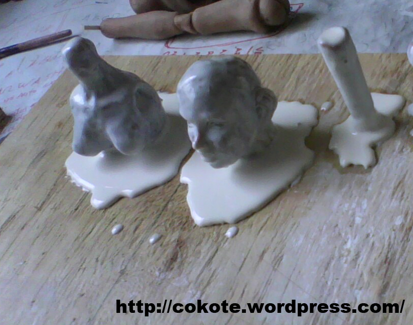 Ya con algunas piezas lista, no pude perder la oportunidad de probar algunas técnicas nuevas para hacer moldes, en este caso moldes tipo «guante» con un contra molde de yeso. La obtención del molde es un poco lenta, pero sus resultados son excelentes.