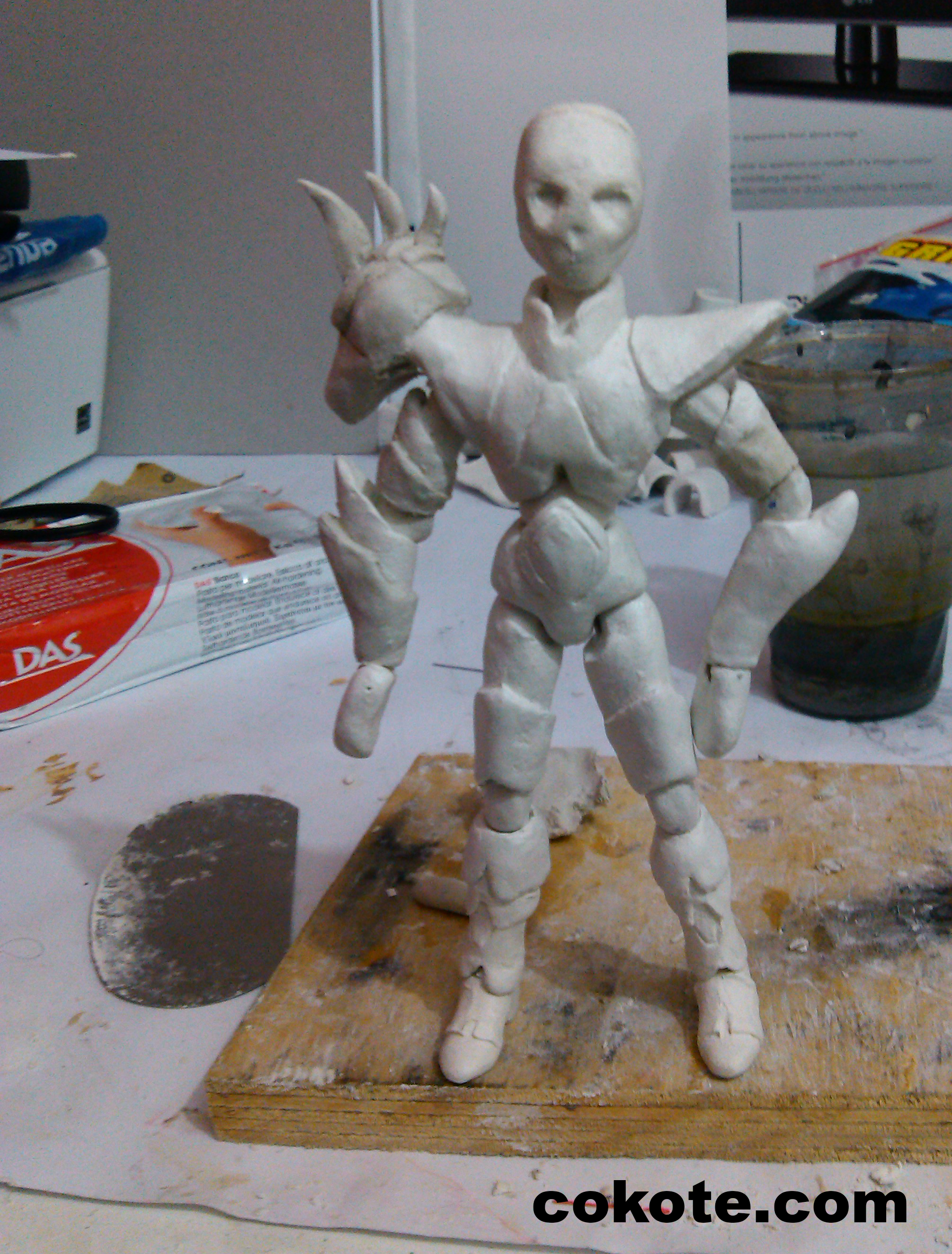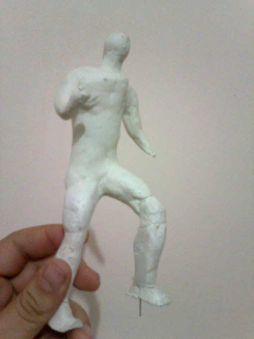Ya seca la «parte gruesa de la figura» modelé los detalles agregando más masa das, la cabeza la modelé por separado solo por comodidad, luego la pegué al cuerpo.