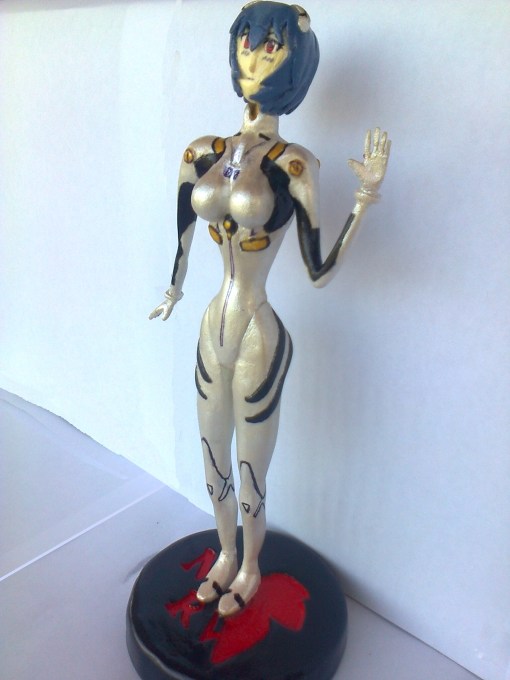 Uno de los primeros que me gustaría destacar es el trabajo de Bryan de Costa Rica, en uno de sus correos recuerdo que me comentaba que se había animado a realizar una figura de Rei Ayanami de Evangelion, y específicamente me consultaba por como pintar los ojos, luego de unos cuantos tips, terminó su primera figura, con un resultado que en mi opinión era prometedor, aunque si bien me dijo algo como : » Puedes usar la fotografía en un post de como no debe hacerse una figura.» y bien, esta es la foto:
