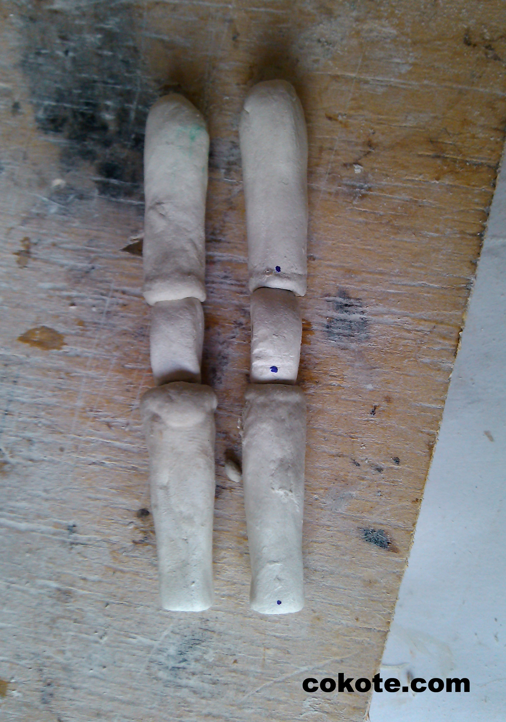 Y me queda algo así, la figura en una forma muy básica, sobre la cual se puede trabajar, con relativa facilidad. Como su nombre lo dice BJD o Ball Jointed Doll es por las esferas que son parte de las articulaciones, en este caso en particular, no están pegadas a la pieza, solo esbozadas, estás esferas pueden ser de poliestireno espandido, madera o incluso hechas con el mismo material con el cual estás trabajando, es importante que éstas esferas sean relativamente perfectas, de lo contrario afectaran a la estabilidad de tu pieza y será muy difícil que se mantenga de pie por si misma. Las siguientes imágenes son de la ubicación de las esferas en la pieza.