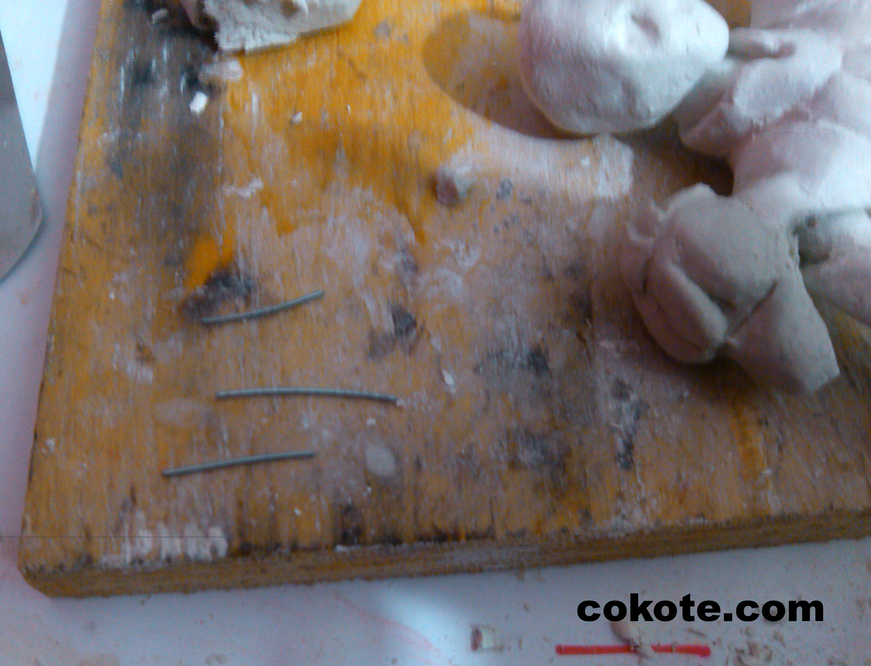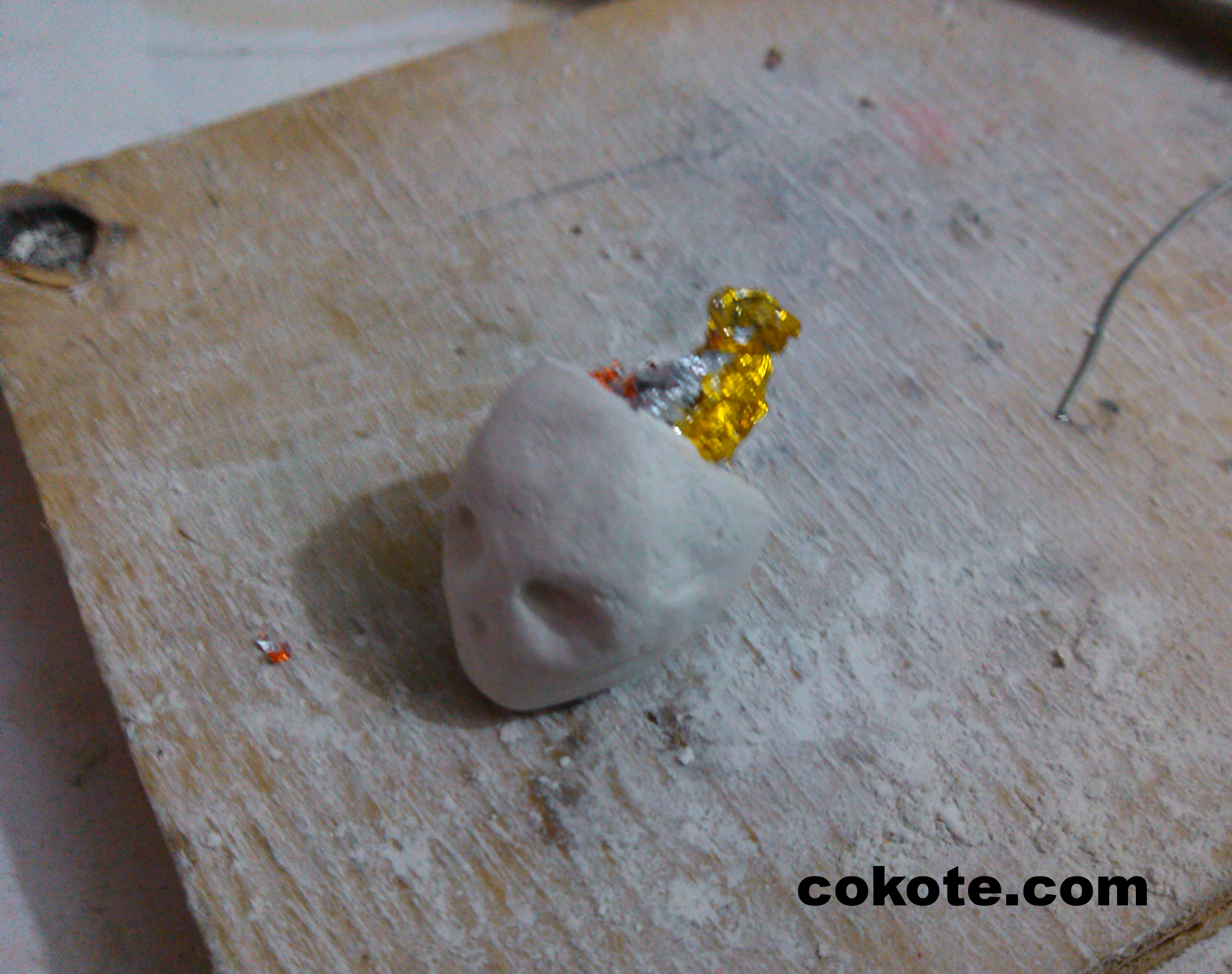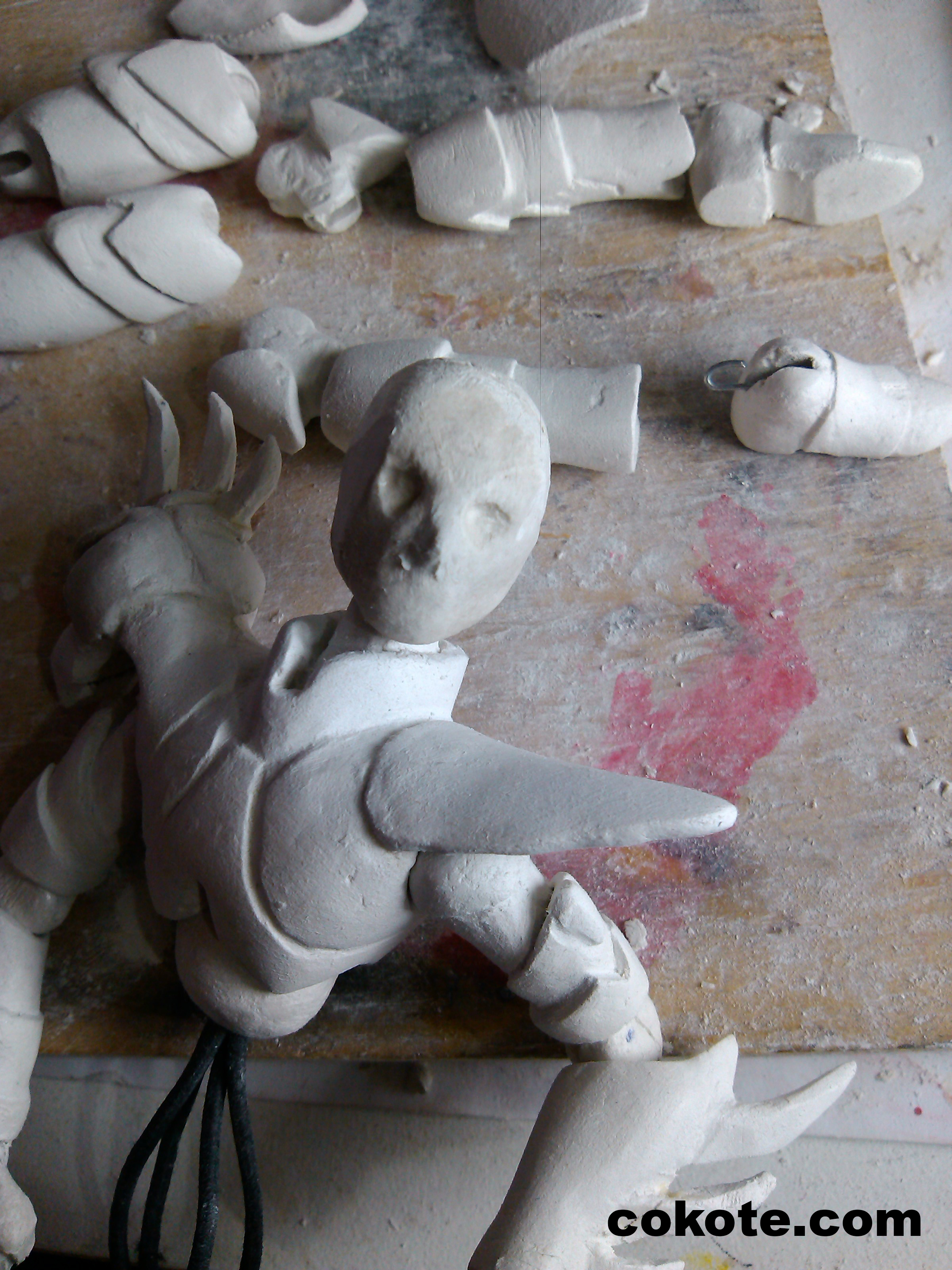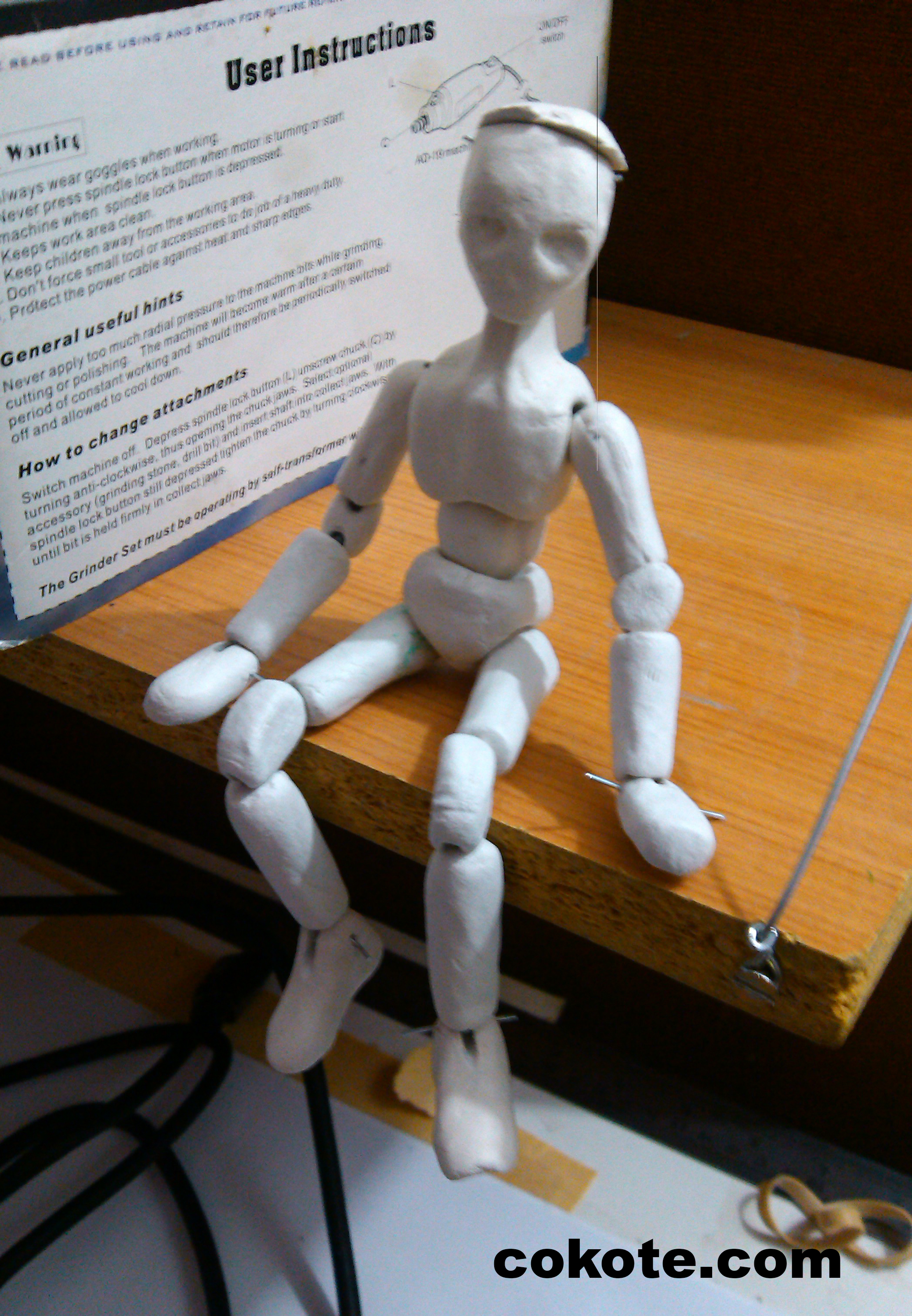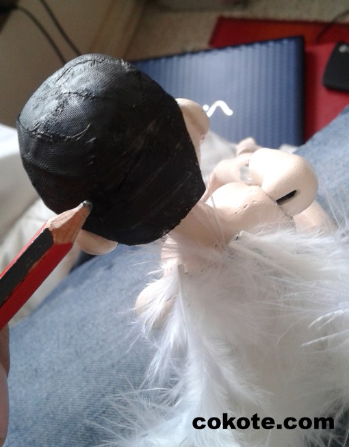 cok_fig 003Aquí solo la lleva en el cuello y es para el movimiento de la cabeza, si hiciste las esferas del mismo material, en este caso pasta das, puede agregar un poco de cola vinilica  para que quede más firme, una vez seca, solo haz un pequeño orificio con un taladro pequeño.