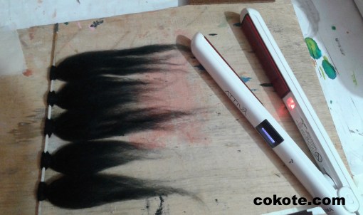 Ahí se ve el pegamento, en el lado derecho de la cabeza, para pegar el mechón de ese lado (derecho).