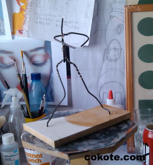 Dejó secar y pego unos alambres, similar a lo que hice con los dedos, sobre la cabeza para posteriormente hacer los detalles.