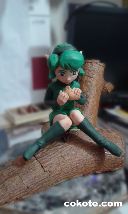 Una vez terminado aquello, me dedico a realizar la «falda» del personaje, solo extiendo un poco de masa das y luego envuelvo con ella la cintura de la figura, de una forma muy sencilla. Hasta ahora el material se ha portado bien.