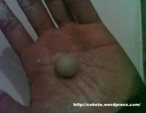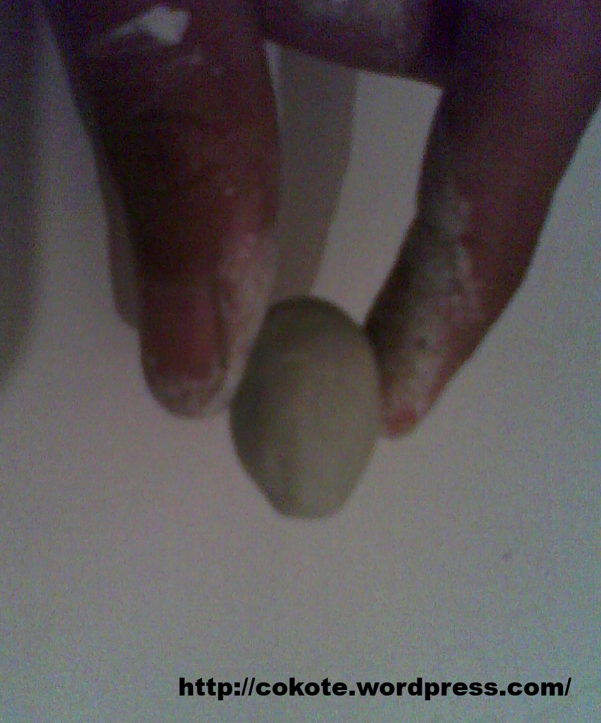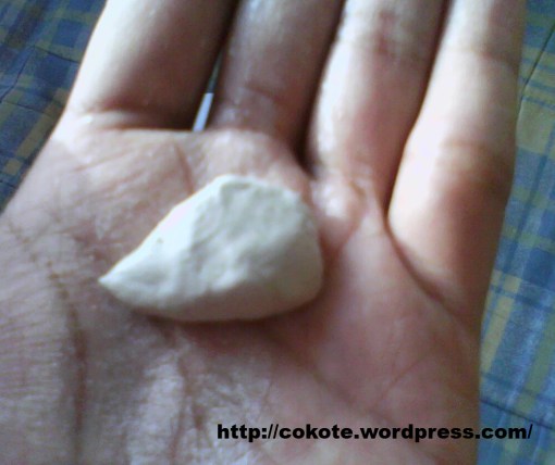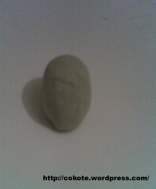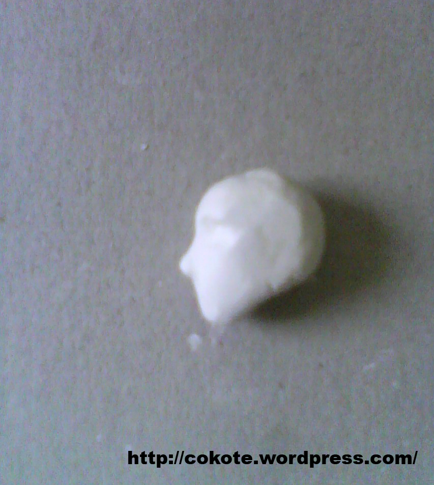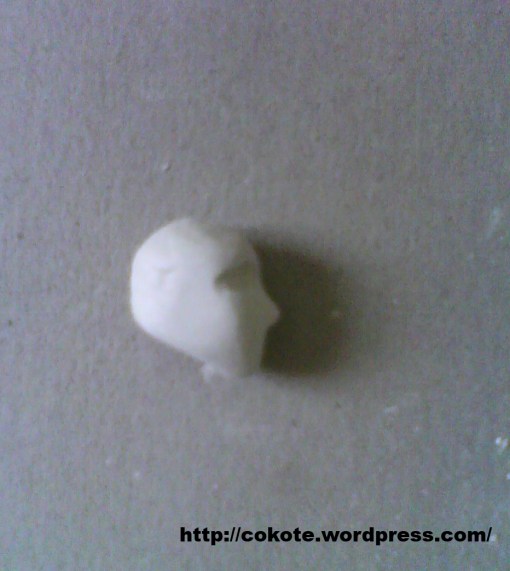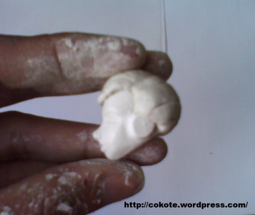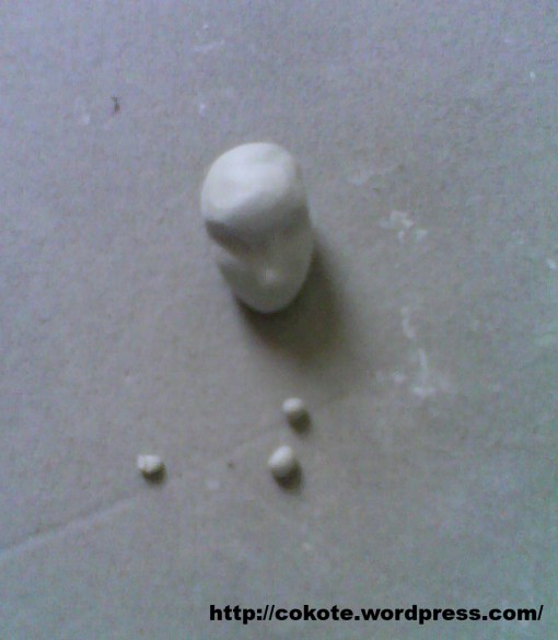 Aunque suene extraño ahora hay que ponerle los ojos 🙂 para ello hago pequeñas esferas con pasta par modelar que pego con abundante agua en las cuencas, así: