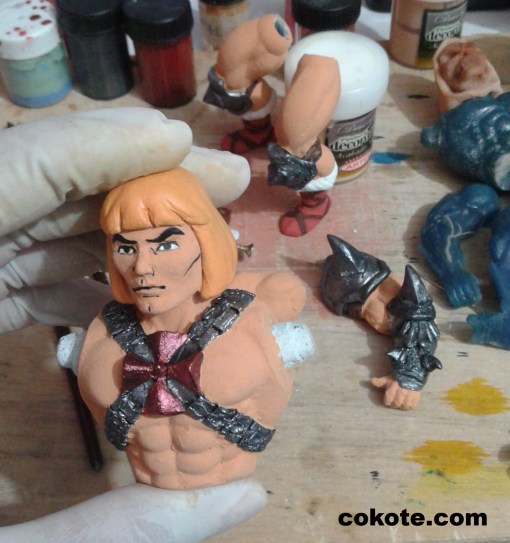 Para comenzar tomé, como es habitual para hacer estas figuras al estilo motu, copias en resina de las piezas de los juguetes originales, las mismas que usé para Skeletor, He-man y los demás.