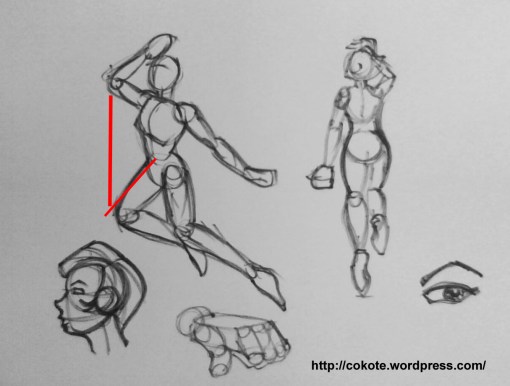 Aquí se ve la relación de tamaño de la cabeza con respecto al cuerpo, que el ancho del cuerpo es un tercio de la cabeza y que el cuerpo es dos veces la cabeza, en altura 😛 . Reitero que esto nos va a facilitar el modelado de la figura y va a evitar en gran medida que uno mire la figura y se pregunte: «¿Hay algo extraño?» XD me ha pasado muchas veces!!!!