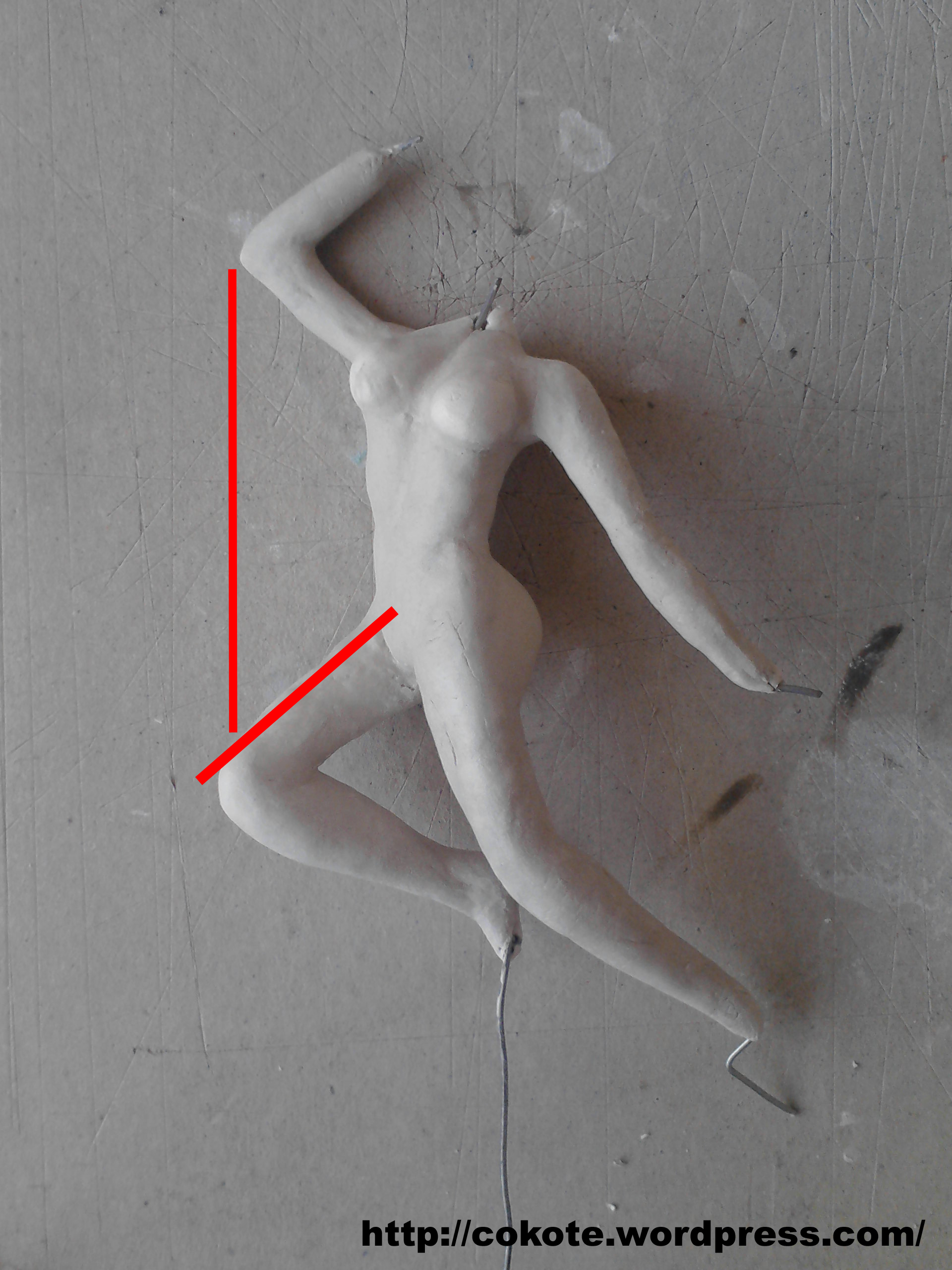 Esto es un paso fundamental, puedes realizarlo una vez que la masa esté seca o aún fresca, para añadir más material en caso de que falte o quitar en el caso contrario, de que haya quedado una parte más «gorda» de lo que debía, mientras las proporciones de la figura sean más cercanas a la de nuestro boceto más probabilidades hay de quedar conformes con el resultado final. Para ello se puede utilizar un lápiz o una regla, seguramente las personas que dibujan están familiarizados con esto, en este punto mientras más vistas de la pose tengamos es mejor, si presenta dificultades el dibujar tantas vistas de la pose de la figura, una cámara de fotos y una vícti… modelo sacan del apuro, además una foto es «más inmediato»