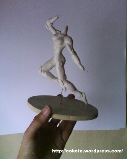 Uuuuffff por fin terminé esta primera parte del modelado!!! XD reitero que se trata tan solo de la forma básica de la figura y que es un método que me ha dado buenos resultados jejeje, lo ideal es modelar un cuerpo humano como si cubrieras el esqueleto de alambre con los «músculos de masa» tal cual como son en la vida real (biceps, triceps… eehhh no me sé más, pero espero entiendan lo que quiero decir) es decir replicarlos sobre nuestro esqueleto de alambre, es lo ideal, toma mayor inversión de tiempo eso sí, pero la ganancia se obtiene al ver el resultado, pero en fin, no soy un experto como he mencionado en más de una oportunidad y esta es solo mi opinión. Pues bien, ahora solo resta dejar secar antes de seguir, aún hay muchas que arreglar y muchos detallitos que me harán el trabajo un poco más lento, pero son precisamente los detalles en los que uno pone su atención al ver una figura y mientras más te detengas en ellos, mejor quedará la figura (según yo :P) y bueno unas fotos de como está quedando.